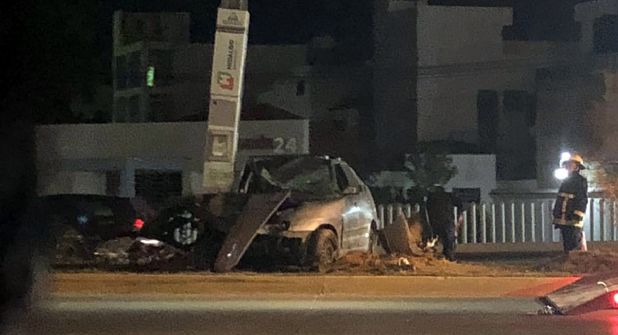 PACHUCA. - La noche de este sábado, un automóvil se impactó contra un poste metálico del C5i, en donde se ubican las cámaras de seguridad de la Secretaría de Seguridad Pública, sobre la Supervía Colosio, a la altura de la plaza comercial Gran Patio Pachuca.