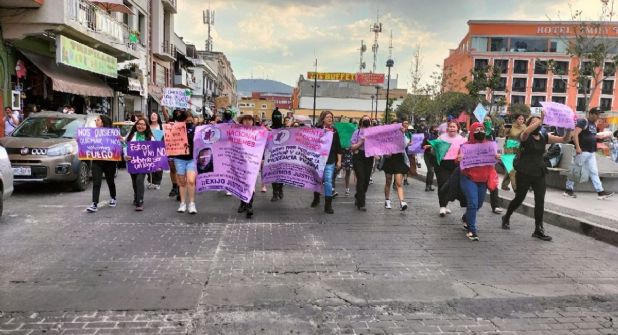 El punto de reunión para las acciones de protesta fue en la Comisión de Derechos Humanos del Estado de Hidalgo (CDHEH), desde donde las mujeres exigieron a las y los funcionarios públicos elaborar políticas públicas para la eliminación de las violencias contra mujeres, adolescentes y niñas.