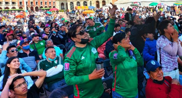 PACHUCA.- Por más de 90 minutos, aficionados pachuqueños que acudieron a la Plaza Juárez a ver el partido de futbol entre México y Arabia Saudita mantuvieron la esperanza de que la selección pasaría a octavos de final del mundial de Qatar 2022.