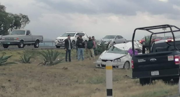 Por lo que el vehículo compacto dio varios movimientos bruscos y volcó, para lo cual igual dio algunos giros, finalmente quedó atravesado en el camellón de la México-Pachuca que es de tierra; al interior dos personas murieron debido a que sus cuerpos no soportaron los golpes en el siniestro.