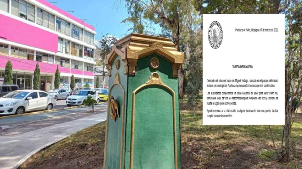 La madrugada del lunes fue robado el busto que estaba en la parte oriente del parque que lleva el mismo nombre del Padre de la Patria, en Pachuca, informó la Policía municipal.