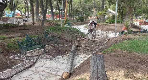 Con sierras, machetes y guantes, siete trabajadores del municipio comenzaron con el derribo de los árboles, cuyos troncos serán llevados a otro espacio a fin de ser incinerados.