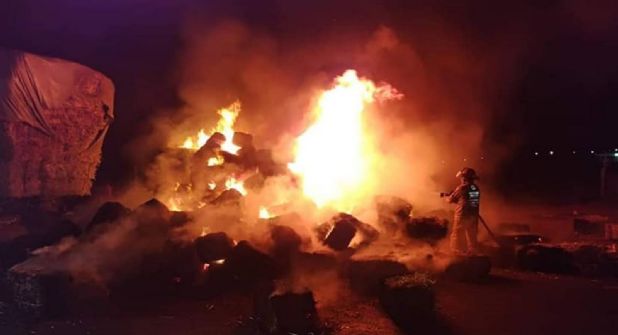 La carretera estuvo bloqueada por unos momentos, mientras el cuerpo de emergencia realizaba las labores para sofocar las llamas y retirar las pacas de paja quemada de la vía.