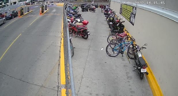 El robo sucede en cuestión de segundos, momento que el hombre se acerca a la bicicleta y de una mochila saca lo que se asemejan a unas pinzas. Con la herramienta corta el seguro de la bicicleta, se sube a ella y sale del estacionamiento de la Plaza Galerías.