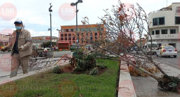 Los árboles secos que retiraron fueron recargados en una jardinera ubicada frente al extinto hotel Independencia, a fin de que en las próximas horas un camión del municipio se los lleve.