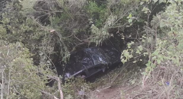 Se trató de un Nissan Tsuru, cuyo operador perdió el control por causas desconocidas, lo que ocasionó que saliera del camino y se proyectó a un pequeño barranco, donde la unidad quedó varada entre matorrales.
