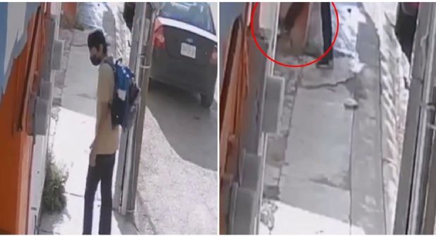 El clip compartido reflejó que inicialmente se ve a un joven que vestía playera color crema, además de pantalón, gorra y cubrebocas en color negro.