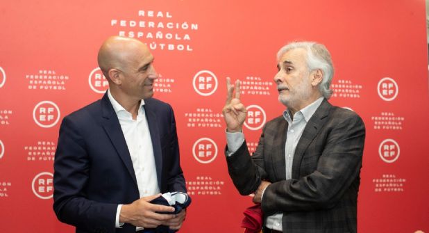 PACHUCA.- Jesús Martínez, presidente del Grupo Pachuca y nuevo máximo accionista del club español Real Oviedo se encuentra de visita en España, donde fue recibido por el presidente de la Real Federación Española de Futbol (RFEF), Luis Rubiales, en la Ciudad del Futbol de Las Rozas.