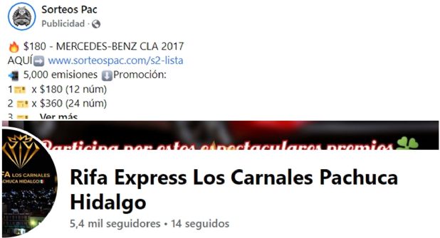 Los vehículos promocionados van desde un Mazda 3 a un Mercedes de lujo y los boletos para el aparente sorteo cuestan 180 y en promoción dos por 360.
