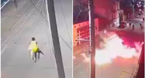 PACHUCA.- Cámaras de seguridad captaron el momento en el que un menor de edad estuvo en riesgo de sufrir quemaduras por pirotecnia en Pachuca.