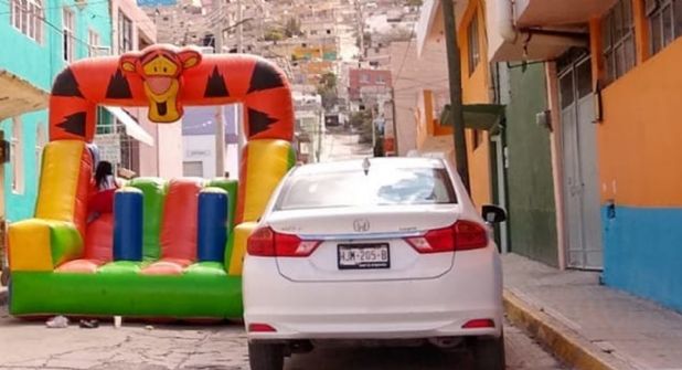 Fue con un juego inflable que un habitante de la capital instaló presuntamente frente a su domicilio en la calle Michoacán de la colonia Cubitos.