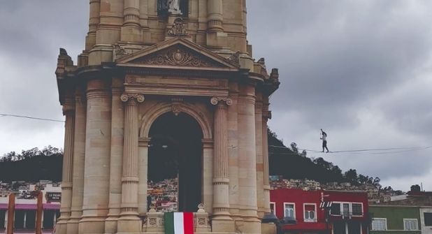 PACHUCA.- Con la realización de un deporte extremo denominado highline, esta mañana fue celebrado el 112 aniversario de la construcción del Reloj monumental en la plaza Independencia de Pachuca.
