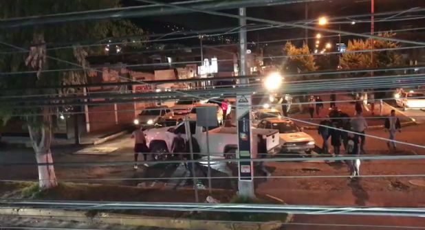 El hecho ocurrió en la entrada del fraccionamiento Villas del Álamo cuando dos vehículos, una Chevrolet Silverado blanca y un taxi del servicio metropolitano de Pachuca, participaron en un accidente.