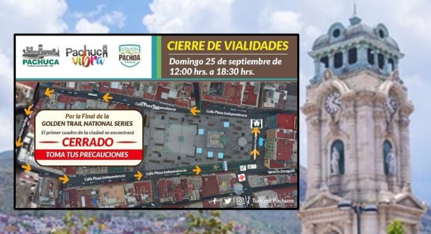 PACHUCA.- ¡Atención! Este domingo 25 de septiembre permanecerá cerrada la circulación vial del primer cuadro de la ciudad Pachuca, con motivo de la gran final de la competencia deportiva Golden Trail National Series.