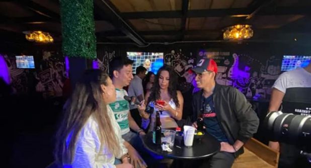 La página oficial de ese bar compartió una serie de fotografías en las que Lizbeth Rodríguez apareció junto a varias personas que presumiblemente mantenían una relación de infidelidad; además, estuvo acompañada de su equipo de producción.