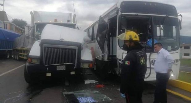 El accidente ocurrió sobre la carretera federal Pachuca-Tulancingo, donde estuvieron involucrados un tractocamión que transportaba materiales de construcción y un autobús de pasajeros de la línea Tizayuca.