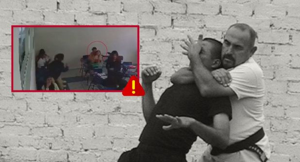 El momento ocurre en la parte trasera del salón donde un joven de playera café toma del cuello con el antebrazo a la chica sentada delante de él. El video no contiene audio por lo que solo se observa como todos en el salón continúan su rutina, hasta que casi 11 segundos después de sostenerla con esta llave china, la estudiante se desmaya y cae de la butaca al suelo.