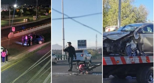 De acuerdo con la cronología de los hechos, el primer siniestro ocurrió durante la madrugada de hoy, cuando el conductor un vehículo tipo hatchback en color azul marino perdió el control del volante y tras movimientos bruscos chocó contra el muro de contención sobre el viaducto Nuevo Hidalgo, pero sin que pasara a mayores.