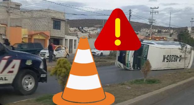 PACHUCA.- Cero y van dos en 24 horas. La mañana de este martes 28 de noviembre se reportó la volcadura de una combi del transporte público de la ruta Providencia-Centro. De manera preliminar se informó, el conductor iba a exceso de velocidad, situación que lo obligó a perder el control del volante y derrapar a la altura de la entrada al fraccionamiento San Cristóbal en el municipio Mineral de la Reforma, Hidalgo.