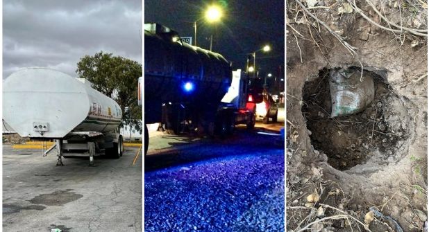 Luego, asentó que se tuvo otro aseguramiento casi similar, pero en el bulevar Las Torres cerca de una gasolinera de la marca Petróleos Mexicanos (Pemex), igual en Mineral de la Reforma, donde se ubicó otro tractocamión atorado a un autotanque con capacidad de 28 mil litros, así como otro contenedor tipo pipa que contenía hidrocarburo.