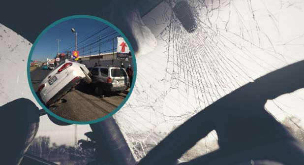 PACHUCA.- Un automóvil chocó contra una camioneta estacionada en la lateral del bulevar Santa Catarina en la ciudad de Pachuca, Hidalgo a la altura del sector primario por el Congreso Estatal, donde el vehículo compacto quedó con dos llantas por encima del otro dejando como resultado daños materiales y al menos tres personas lesionadas.