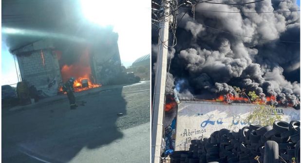 MINERAL DE LA REFORMA.- Un fuerte incendio registrado la mañana de este miércoles 22 de marzo de 2023 consume una vulcanizadora en el municipio Mineral de la Reforma, de lo que se desprende una fuerte humareda en color negro debido al material que se consume, por lo que hay resigo para la salud de la población cercana ante los elementos tóxicos que serán liberados a la atmósfera.