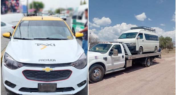 Cabe especificar que, de los dos vehículos en Pachuca, uno correspondía al transporte individual, es decir, taxi, el cual después de una revisión de la documentación correspondiente fue verificado que las placas eran falsas, por lo que fueron retiradas y se procedió al resguardo y aviso a la autoridad competente.