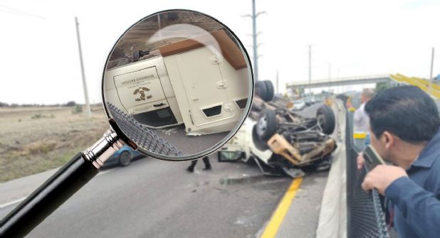 PACHUCA.- Por aparentemente conducir a exceso de velocidad y sin precauciones al volante, una camioneta dedicada al traslado de valores financieros protagonizó un fuerte accidente vial la tarde de este martes 16 de mayo de 2023 sobre la carretera Pachuca-Tulancingo, lo que dejó fuertes daños materiales y tráfico, sin que de manera preliminar hubiera personas lesionadas.