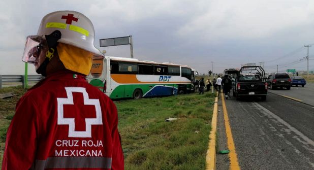 En ese sentido, el autobús Irizar Century salió de la carpeta asfáltica de la carretera y tras transitar por varios metros sobre el camellón de terracería quedó atravesado; por el choque contra el volteo algunos parabrisas se rompieron y cayeron hacia los asientos; a la par, el presunto responsable se dio a la fuga.