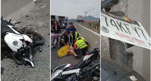 PACHUCA.- Derivado de un accidente tipo alcance entre dos vehículos y por presunta negligencias en el abanderamiento, una motocicleta chocó por detrás de las unidades y dejó a una pareja de jóvenes severamente lesionada en la autopista México-Pachuca, por lo que el tráfico esta tarde de martes 9 de mayo de 2023 se vio ligeramente interrumpido mientras socorristas desahogaron el hecho.