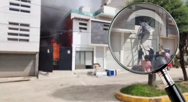 Afuera, un joven sostenía el aparato con ayuda de una escalera y aunque estuvo por caer se logró reponer; tras ello, los que estaban arriba sacaron almohadas y cobijas hacia la calle; en otra parte del clip se observó una camioneta Jeep Cherokee en llamas y con el cofre levantado y más personas molestas a su lado.