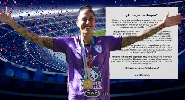 “Llevamos semanas, meses, buscando esa protección que dentro de la misma REFEF no hemos podido encontrar. Las mismas personas que nos piden confianza son las que hoy lanzan una lista con jugadoras que han pedido se no convocadas”, escribió Jenni en un comunicado oficial publicado mediante su red social X.