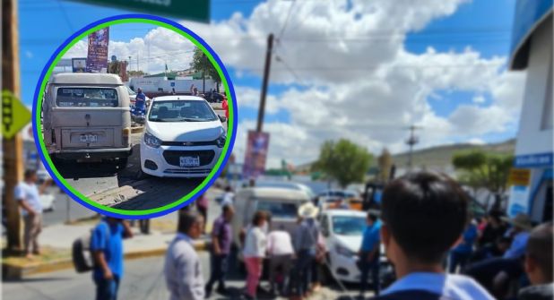 PACHUCA.- Un fuerte accidente vial fue registrado por la tarde de este martes 19 de septiembre de 2023 en la ciudad de Pachuca, del que fue descrito una combi al parecer impactó primero a un vehículo compacto y luego de manera violenta atropelló a peatones que trataban de cruzar la calle.