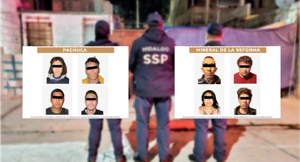 En Pachuca, el cateo se realizó en la avenida Álamos, colonia Los Cedros, lugar en el que aseguraron a cuatro personas con iniciales D. E. S., alias “El Profe", y su pareja sentimental P.A.S.F., así como a C.A.U O., alias "El Güero” y L.F.D.L.R.G., alias “El Moreno”.