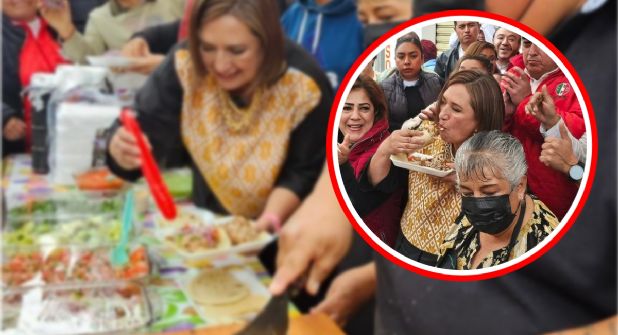 Inmediatamente después, la pre candidata Xóchitl Gálvez ordenó 2 tacos de carnitas y de ellos las imágenes dieron cuenta que fueron campechanos, ya que se alcanzó a notar cueritos y carne maciza, mismos que le sirvieron en una charola de unicel y comenzó a prepararlos a su gusto para poder comer.