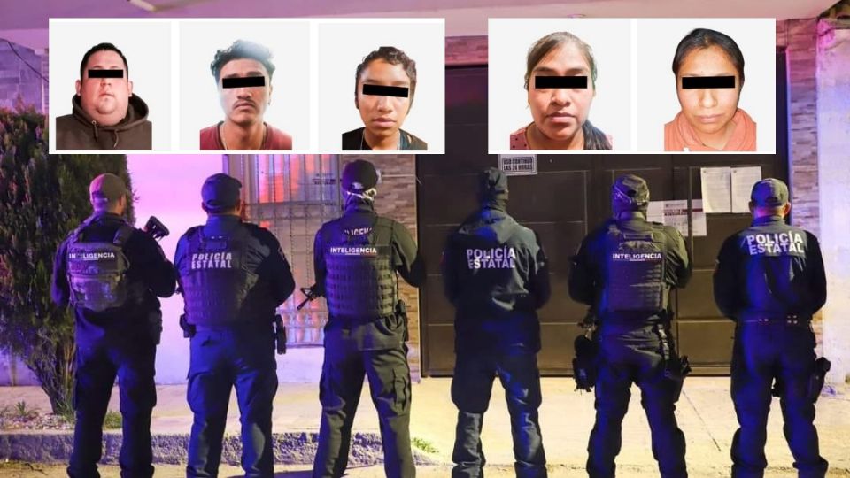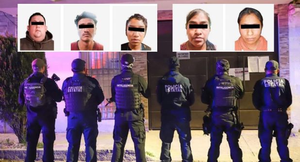 La policía realizó los trabajos en coordinación con la Procuraduría General de Justicia de Hidalgo (PGJEH), como resultado dio la detención de 3 mujeres, identificadas con los nombres de las iniciales M. M. A., N. A. A. y C. H. C., así como de 2 hombres, quienes se identificaron con las iniciales A. M. N. y J. L. C. A.