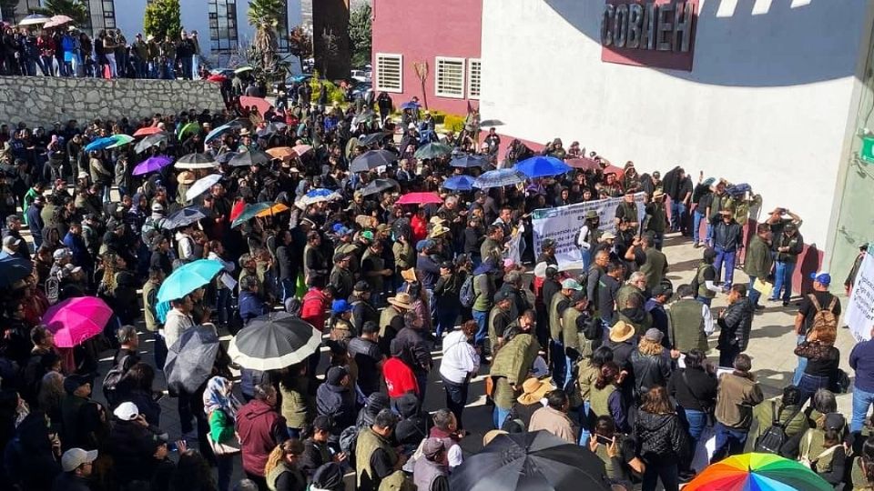 Los manifestantes se distribuyeron para solicitar atención a sus peticiones en la explanada de Plaza Juárez y las instalaciones de la dirección general del Cobaeh, donde se llevan a cabo mesas de negociación.