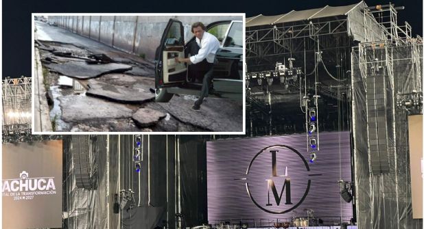La imagen que causó sensación fue una referencia hecha al estado de las calles de la ciudad de Pachuca, pues quien deslumbra con “Sabor a mí” fue puesto bajando de su vehículo en medio de baches; otra similar fue el artista al volante y “atrapado” en el tráfico de la Supervía Colosio para llegar a su concierto.