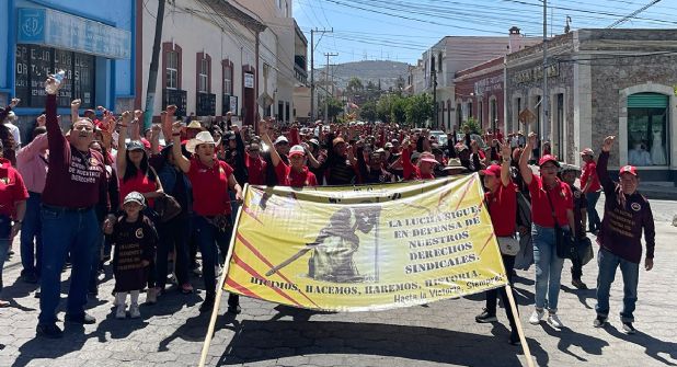Tras culminar la asamblea general extraordinaria, los sindicalizados, junto con sus familias, marcharon del parque Hidalgo a la Presidencia Municipal de Pachuca para mostrar al alcalde su fuerza, lanzando consignas en su contra.