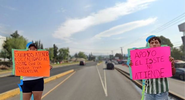 “Exigimos atención de calidad al ISSSTE de Pachuca para Valentina”; “Apoyo, el ISSSTE no atiende”; “Apoyo para Valentina”, fueron algunas de las consignas colocadas en los carteles que portaba el grupo de aproximadamente 20 personas que participa en la protesta, quienes no se retirarán hasta ser atendidos.