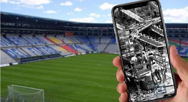 Una de las imágenes históricas que destacó de la galería fue la tomada al interior del inmueble que ya tomaba forma, pues el camarógrafo se colocó justo en las gradas y captó como eran preparadas las vigas de acero para poder vaciar concreto y finalmente hacer el piso elevado en forma de escalones, todo entre andamios y obreros.