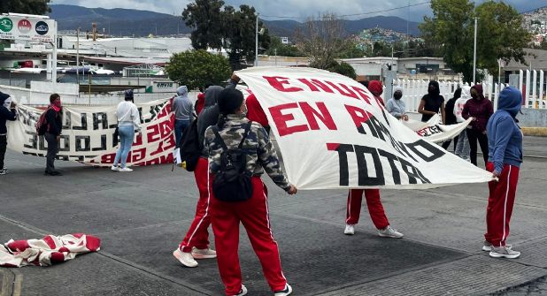 PACHUCA. - Alumnos de la Escuela Normal Rural Luis Villarreal El Mexe realizaron una manifestación en las inmediaciones de la Central de Autobuses de Pachuca para negociar con una empresa de autotransporte y que les proporcionaran autobuses para ir por sus compañeros a San Juan Tepatepec, para posteriormente regresar a la capital del estado y realizar una actividad de protesta.