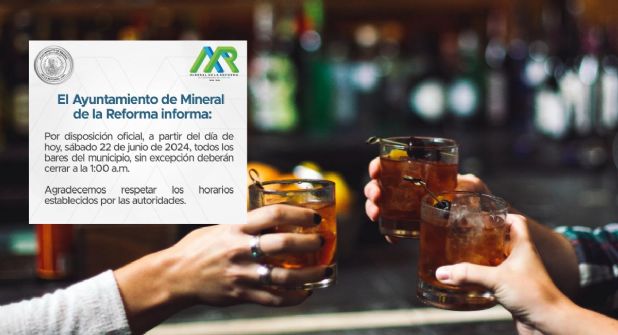 Sin agregar más detalles, la alcaldía de Mineral de la Reforma se unió a Pachuca en su intención de restringir el horario de venta de alcohol, pues al cerrar sus puertas a determinada hora, tampoco se podrán expedir bebidas.