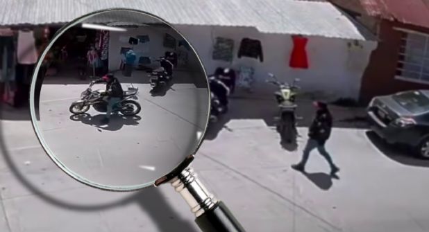 En ese sentido, a las 14:16 horas con 57 segundos un hombre con pantalón de mezclilla azul, así como chamarra y gorra en tonalidades oscuras, apareció en el lugar desde la parte derecha del video, lo que hizo al atravesar la calle para acudir hasta un local de venta de ropa donde estaban estacionadas 2 motocicletas.