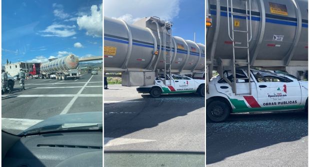MINERAL DE LA REFORMA.- Presuntamente por conducir a exceso de velocidad y además sin mantener alguna precaución, un funcionario público perteneciente a uno de los municipios del estado de Hidalgo sufrió un accidente al quedar incrustado debajo de un remolque tipo pipa que daba la vuelta en un retorno.