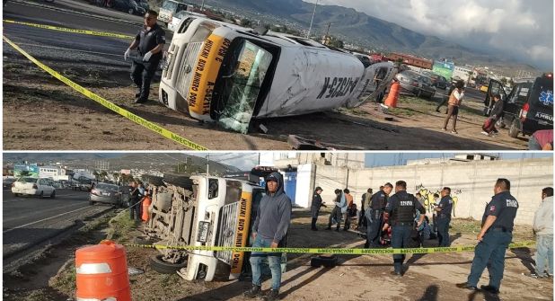 Pero perdió el control del volante y primero chocó contra una pipa, para luego dar unas volteretas en las que uno de los pasajeros salió disparado y al caer sobre el pavimento su cuerpo rebotó; adentro, quedaron más de 10 personas heridas, quienes fueron auxiliadas y llevadas a hospitales cercanos.