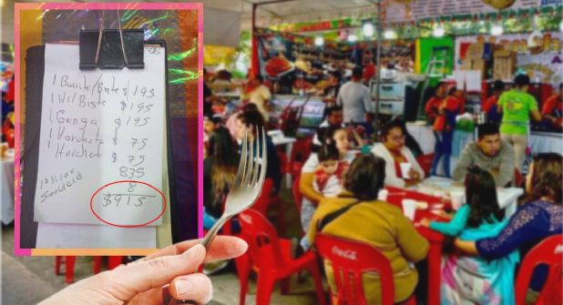 Una primera sorpresa que Verónica y su compañía tuvieron fue el costo de cada artículo en el puesto, pues sumaron 735 pesos, pero luego se percataron que la sumatoria se encontraba completamente mal realizada, ya que en lugar se pusieron 835; pero hay más, ya que se añadió un cargo por servicio.