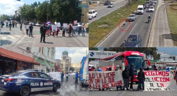 Así han transcurrido las primeras horas de este jueves. Cerca de las 11 de la mañana, la Secretaría de Seguridad Pública y Tránsito Vialidad de Pachuca alertó a los automovilistas y ciudadanos sobre la presencia de un grupo de alumnos de la normal rural Luis Villarreal El Mexe a la altura de la Central de Autobuses de Pachuca.