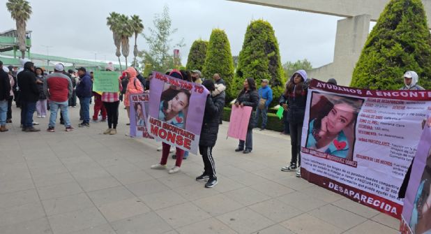 Para hacer patente su exigencia de acelerar la localización de la mujer, el grupo que además se compone de otros familiares e incluso amigos y hasta colectivos de búsqueda portan pancartas con el nombre de ella y una de las fotografías que ha sido usada para la ficha que no ha tenido éxito al momento.