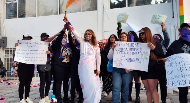 Pachuca. - La tarde de este martes, alrededor de 30 mujeres y niñas se manifestaron con gritos en busca de justicia, varios performance, denuncias e historias donde sus derechos o sus cuerpos fueron violentados. Las manifestantes pidieron que "las leyes avancen tan rápido como la tecnología" puesto que detectaron un aumento en los casos de violencia digital y vicaria.